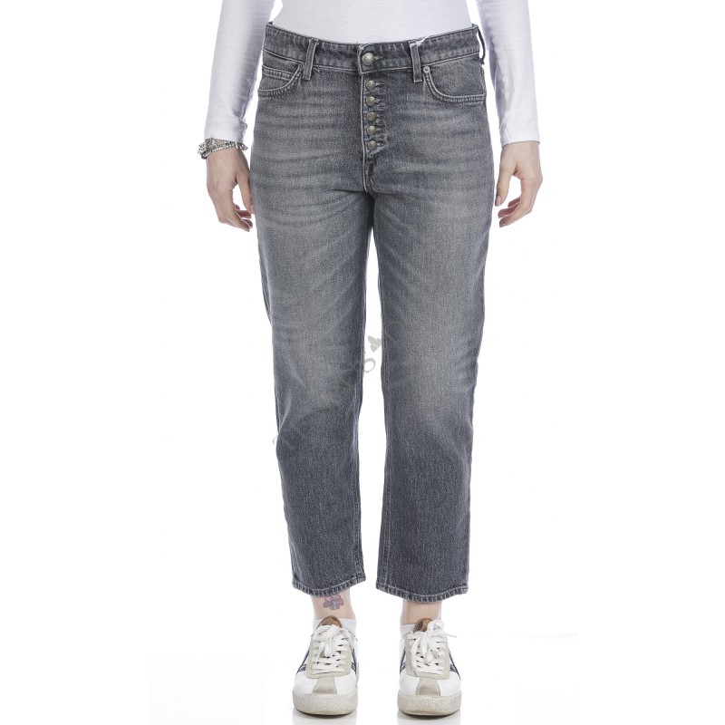 - JEANS GOLDIE COMFORT LILLY DONNA: si tratta di un modello di jeans da donna con lavaggio grigio e vita alta, con passanti e quattro tasche, due anteriori e due posteriori. I bottoni sono a vista e a contrasto, la vita è alta e la vestibilità regolare;